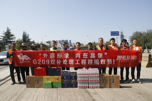 河南锦路公司的高层领导还来到施工现场,向一线施工人员送上月饼、水果、饮料、牛奶等慰问品,向奋战在一线的员工送上节日祝福,对施工者们牺牲中秋节假期依然默默坚守在各自岗位上,对他们用辛勤和汗水和自己一份坚持表示感谢。据了解,由河南锦路承建的国道G209路面挖补处理工程,北起三门峡黄河公路大桥南桥头,南至G209金昌立交桥,路段全长4.3公里,施工内容主要包括破损沥青路面清理、铣刨、沥青面层二次摊铺修补等。国道G209该路段始建于2012年,于2008年改扩建为一级公路,为连接豫西、晋南地区的重要交通主干道,由于日常车流量大、重型货车大型车辆较多、路面负荷大,维护保养任务繁重,导致路面超负荷运载破损严重,为了满足该路段交通量日益增长的需要,为提高安全便捷舒适的公路通行条件,对破损路段的路面进行提升改造,将原有破损路面挖补,重新摊铺沥青路面。