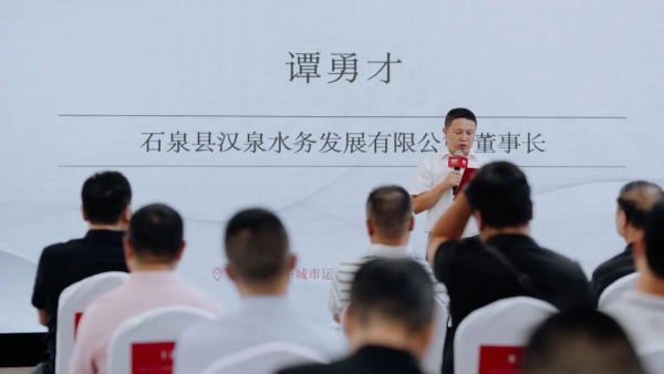 发布会伊始,石泉县汉泉水务发展有限公司董事长谭勇才代表泉然天然矿泉水品牌方登台致辞,在向到场的每一位嘉宾致以感谢的同时,谭总以石泉因西魏废帝元年(公元552年) "城南石隙多泉、径流不息" 而得名开篇。以泉为引,从泉然天然矿泉水水源地独特优越的生态环境,到泉然天然矿泉水为保障品质,直接于水源地建厂,引入无菌灌装的高科技产线,只为了秉承企业初心,不负每一份对泉然的信任等内容进行了详尽的讲述,生动诠释了泉然天然矿泉水的品牌口号“富硒山泉·源自天然”。