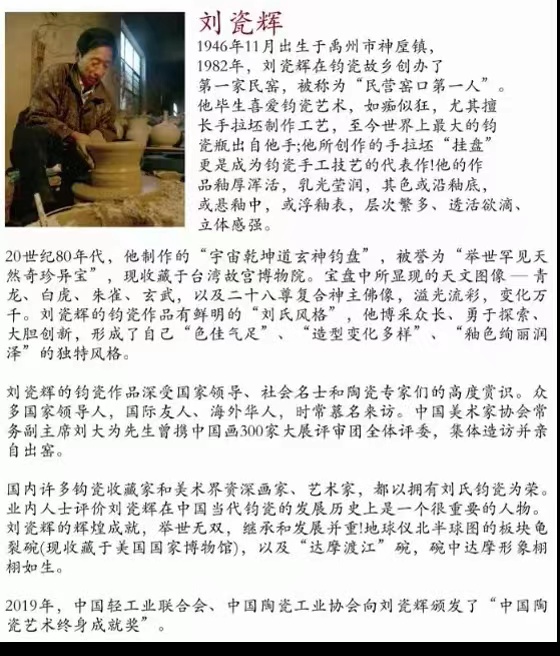 刘雨泉,瓷辉钧窑公司总经理,家族第五代非遗传承人,瓷辉钧窑第三代传承人。