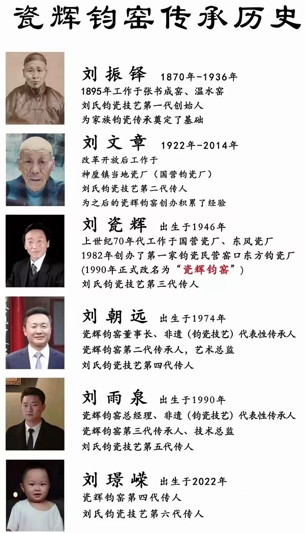 当地的品牌企业,人人皆知,瓷辉钧窑,刘氏家族,一个历经六代传承的钧瓷世家,从创始人刘振铎到如今的刘璟嵘,每一代人都肩负着传承钧瓷艺术的责任与使命。