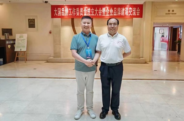 十三行酱酒董事长陶圣雄与大国品牌工作委员会秘书长陈淳安在一起。