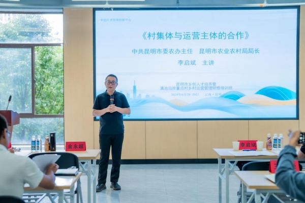 最后一课,中共昆明市委农办主任、昆明市农业农村局局长李启斌以《村集体与运营主体的合作》为主题,围绕昆明市全域农文旅与滇池沿岸重点村的运营,进行了深入的思路指导与讲解。